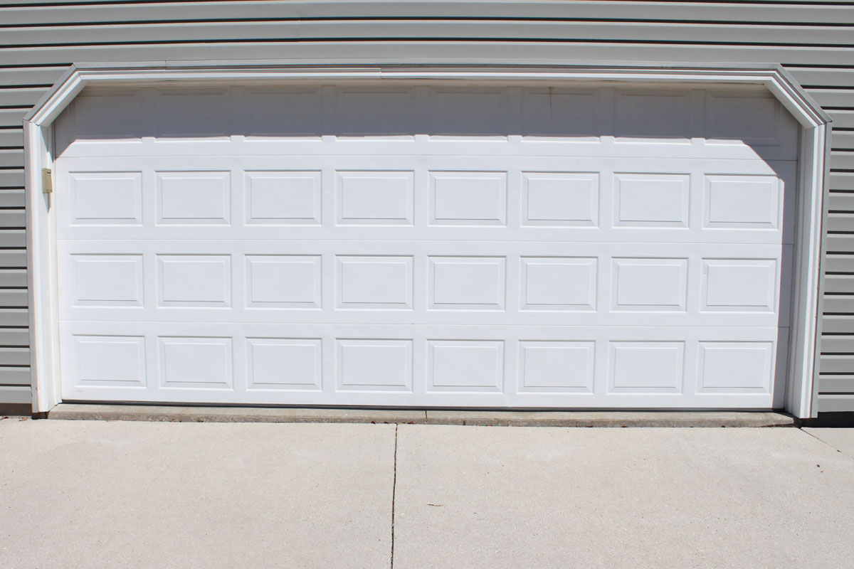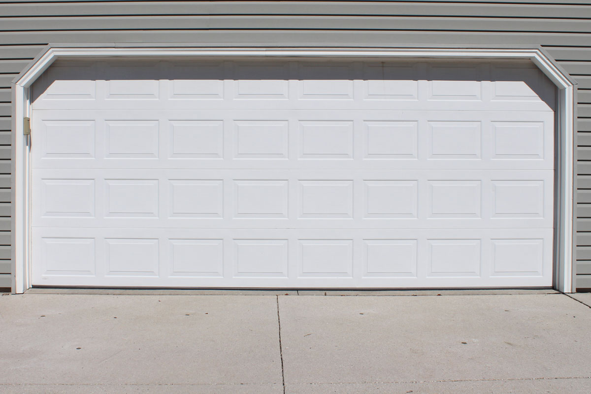 A corner of a beige house with horizontal sidingA corner of a beige house with horizontal siding